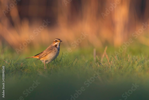 Cute bird. Colorful natural background. Bird: Common bird Bluethroat. Luscinia svecica.