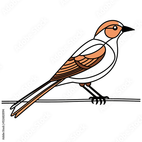 Cute Bird Illustration-Sparrow on Wire-Minimalist Bird Art-Orange and White Bird Drawing-Downloadable Bird Graphics-Ideal for Nature Lovers and Art Projects