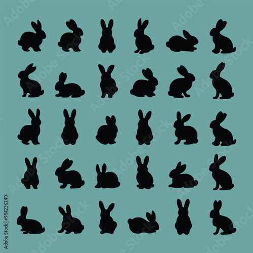 Cute black Rabbit Silhouette set ,On White Background. rabbit silhouette illustration set.