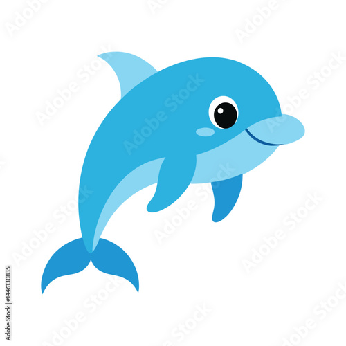 Cute blue dolphin cartoon illustration for children designs and educational material