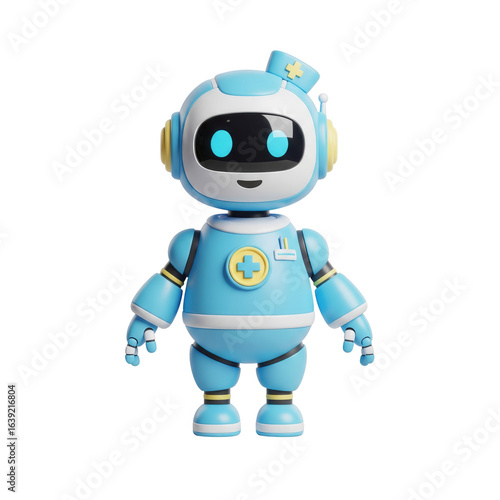 Cute Blue Robot Nurse Doctor Standing Against Transparent Background Concept Illustration