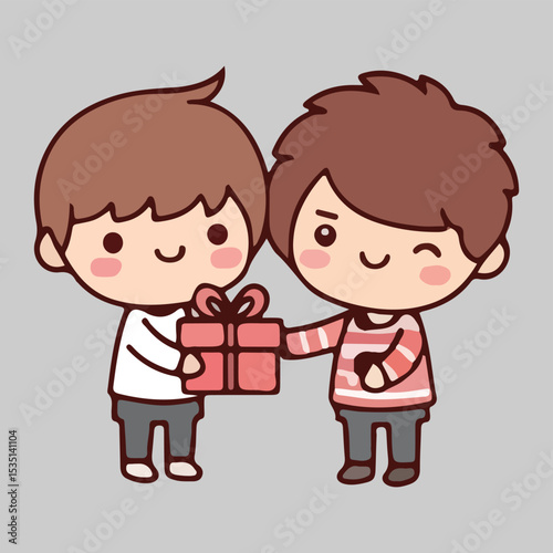 Cute Boys Exchanging a Gift