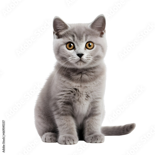 Cute british shorthair kitten, sitting cat isolated on transparent background Generative AI
