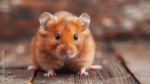 Cute Brown Hamster on Wooden Floor, AI generated image