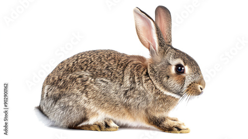 Cute brown rabbit sitting on a white background, showcasing its fluffy fur and long ears. Perfect for Easter or wildlife-themed concepts.
