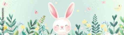 Cute bunny character flat design top view theme garden cartoon drawing colored pastel