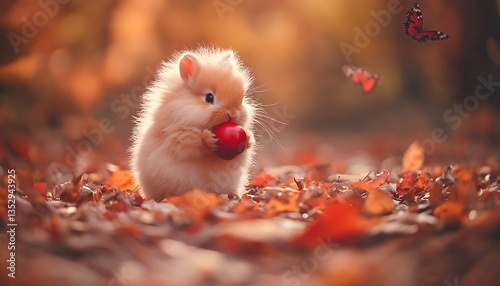 Cute Bunny Eating Apple Autumn.