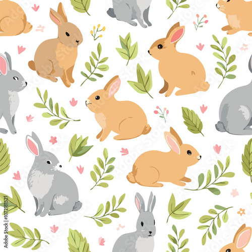 Cute bunny hand drawn seamless pattern