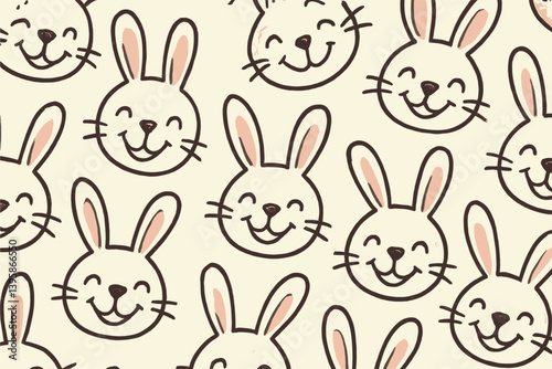 Cute bunny pattern with smiling faces for easter background or kids wallpaper