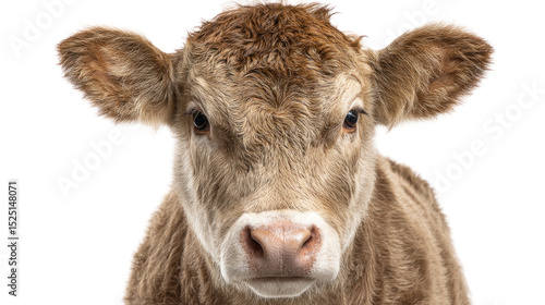 Cute Calf's Gentle Gaze: A captivating portrait of a fluffy, brown calf, its expressive eyes capturing a moment of innocence and farm charm.