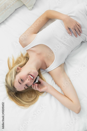 Cute calm woman phoning with her smartphone smiling at camera