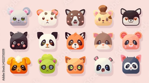 Cute Cartoon Animal Square Faces for Mobile Backgrounds