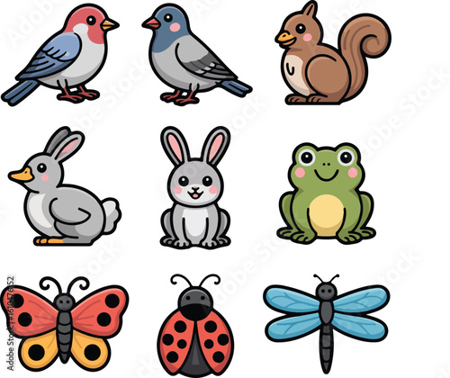 Cute cartoon animals and insects collection bird pigeon