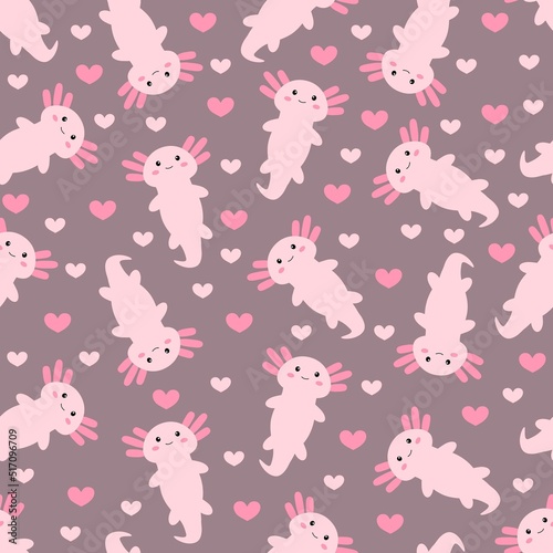 Cute cartoon axolotl. Seamless pattern. Vector.