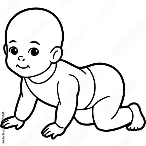 cute cartoon baby boy sitting and smiling in diaper vector illustration