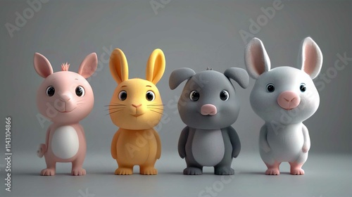 Cute Cartoon Baby Bunny Couple Holding Easter Egg Vector Illustration