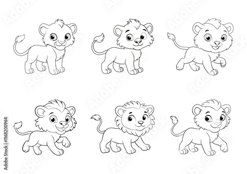Cute cartoon baby lion vector outline and sticker flat illustration