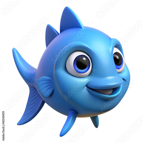 Cute cartoon blue fish isolated on transparent background
