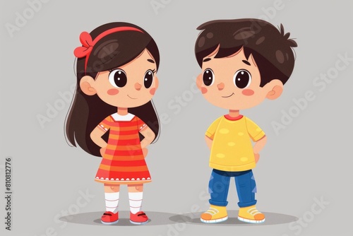 Cute Cartoon Boy and Girl Standing Together