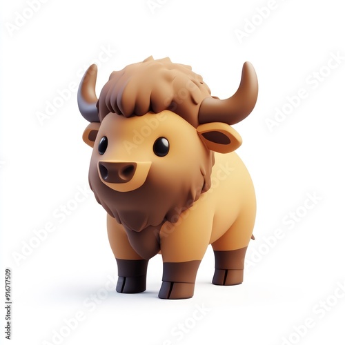 Cute Cartoon Buffalo 3D Rendering
