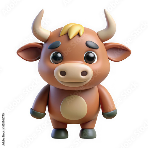 Cute Cartoon Bull Character with Big Eyes animal isolated on a transparent background