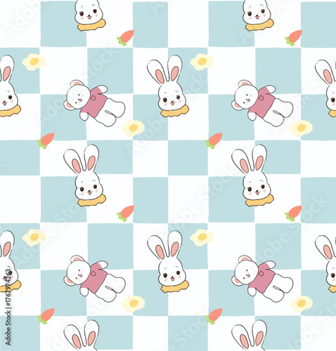 Cute cartoon bunnies and teddy bears in pink shirts. EPS Editable