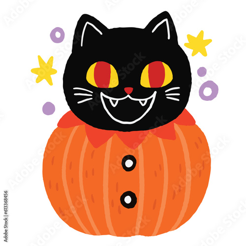 Cute cartoon cat and pumpkin Halloween doodle element.