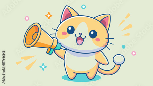 Cute Cartoon Cat with Megaphone in Pastel Colors – Fun and Playful Illustration