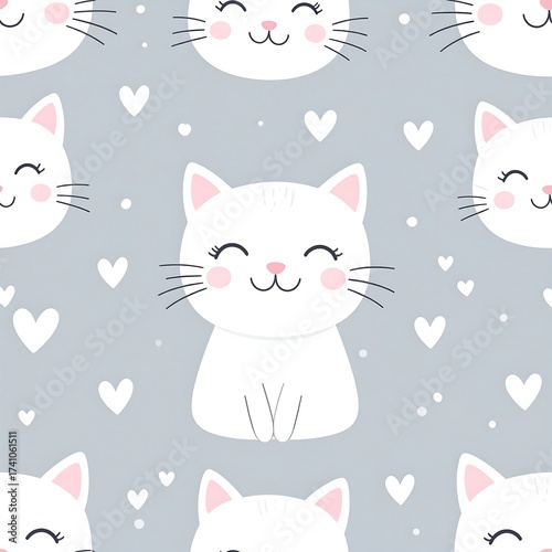 Cute cartoon cats smiling with pink cheeks and small hearts