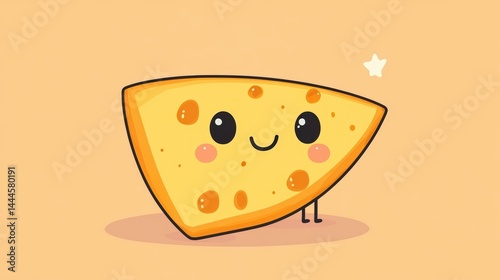 Cute cartoon cheese wedge with smiling face and tiny legs.