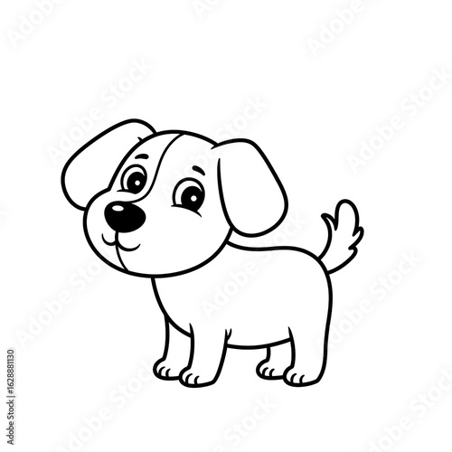"Cute Cartoon Dog Line Art – Black and White Puppy Illustration for Kids"