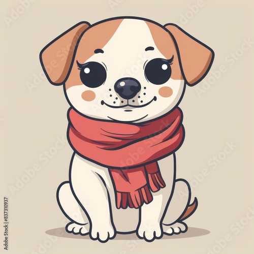 Cute cartoon dog with a red scarf. Adorable illustrated puppy with big eyes, sitting on a cream background. Perfect for kids and pet lovers.