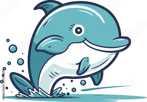 Cute cartoon dolphin. Vector illustration. Isolated on white background.