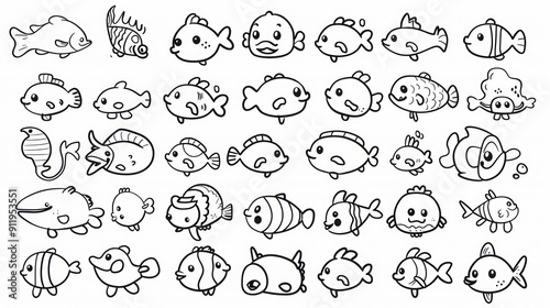 Cute cartoon fish outlines for coloring.