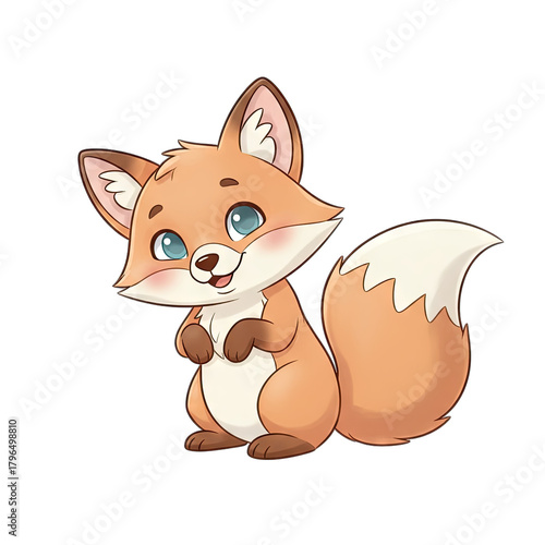 Cute Cartoon Fox Cub Standing Against A Transparent Background With A Playful Expression And Bright Blue Eyes