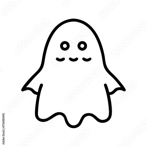 Cute cartoon ghost with smiling face on white background Concept of Halloween