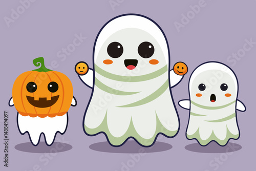 Cute Cartoon Ghosts and Pumpkin for Halloween
