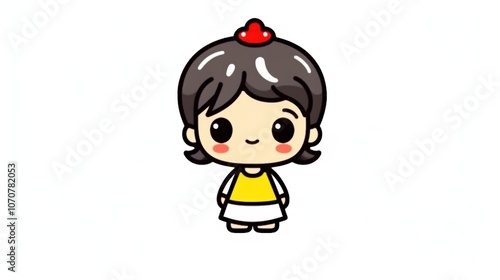 Cute cartoon girl with a small red hat and simple, cheerful expression.