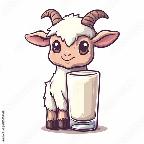 Cute Cartoon Goat Illustration: Whimsical Dairy Animal Character for Children and Creative Art Designs