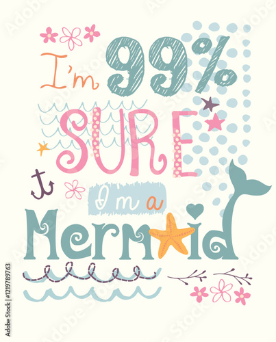 Cute cartoon mermaid character in vector illustration for baby girl t-shirt design