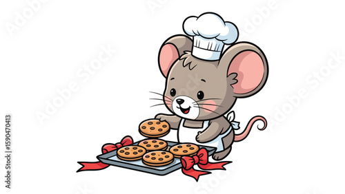 Cute Cartoon Mouse Baker Holding Cookie Sheet Illustration for Children's Designs