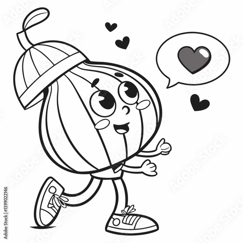 Cute Cartoon Onion Character Running Heart Black and White Line Art Illustration Vector