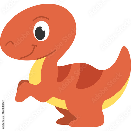 Cute Cartoon Orange Dinosaur Character with Big Eyes and Small Arms Standing on Transparent Background