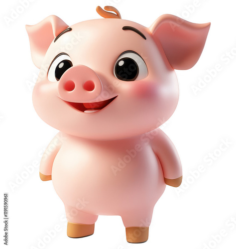 Cute Cartoon Pig Illustration on Transparent Background, Perfect for Design Overlays and Elements