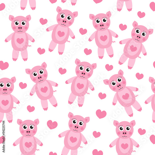 Cute cartoon pig puppy seamless texture. Children's background fabric. Vector illustration