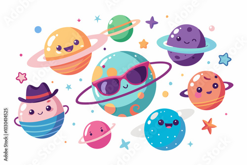 Cute Cartoon Planets and Space Adventure Vector on White Background