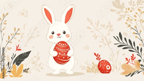 Cute Cartoon Rabbit Holding Decorative Easter Egg