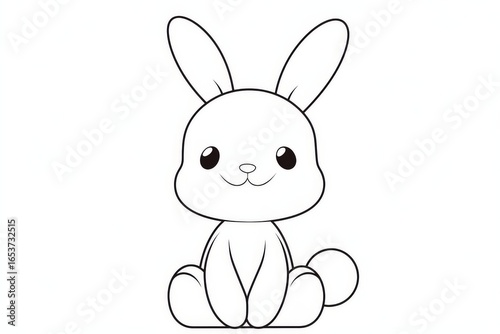 Cute cartoon rabbit line drawing for kids coloring book. Simple vector bunny illustration with bold outline, big ears, and minimal details on white background.