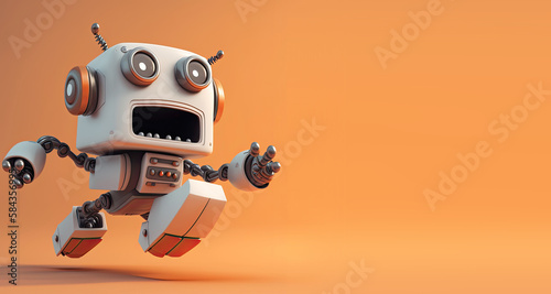 Cute Cartoon Robot Character Running with Space for Copy (Generative AI)
