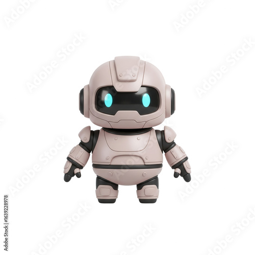 Cute Cartoon Robot Isolated On Transparent Background Minimalist Style And Glowing Eyes